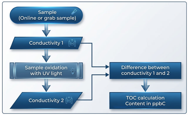 - The analyzer measures the resulting conductivity change to determine the TOC concentration